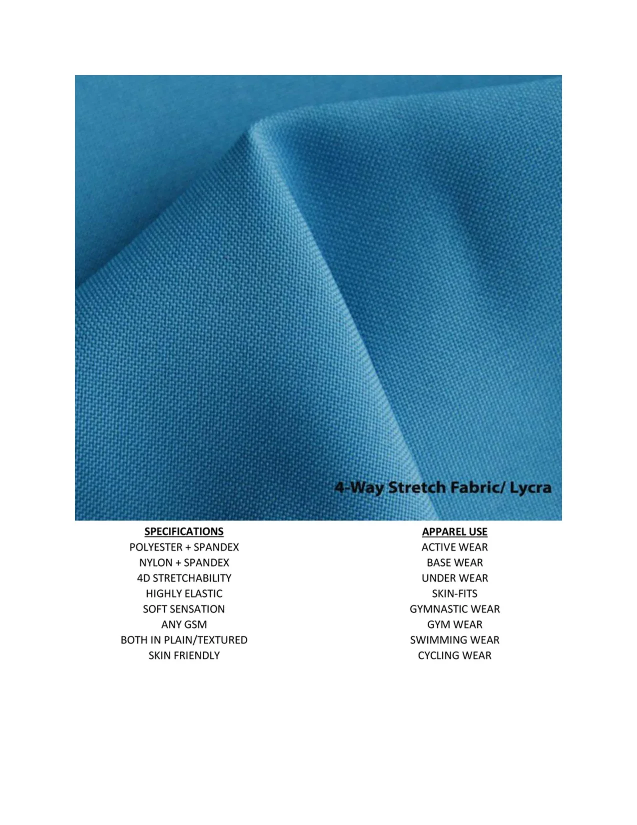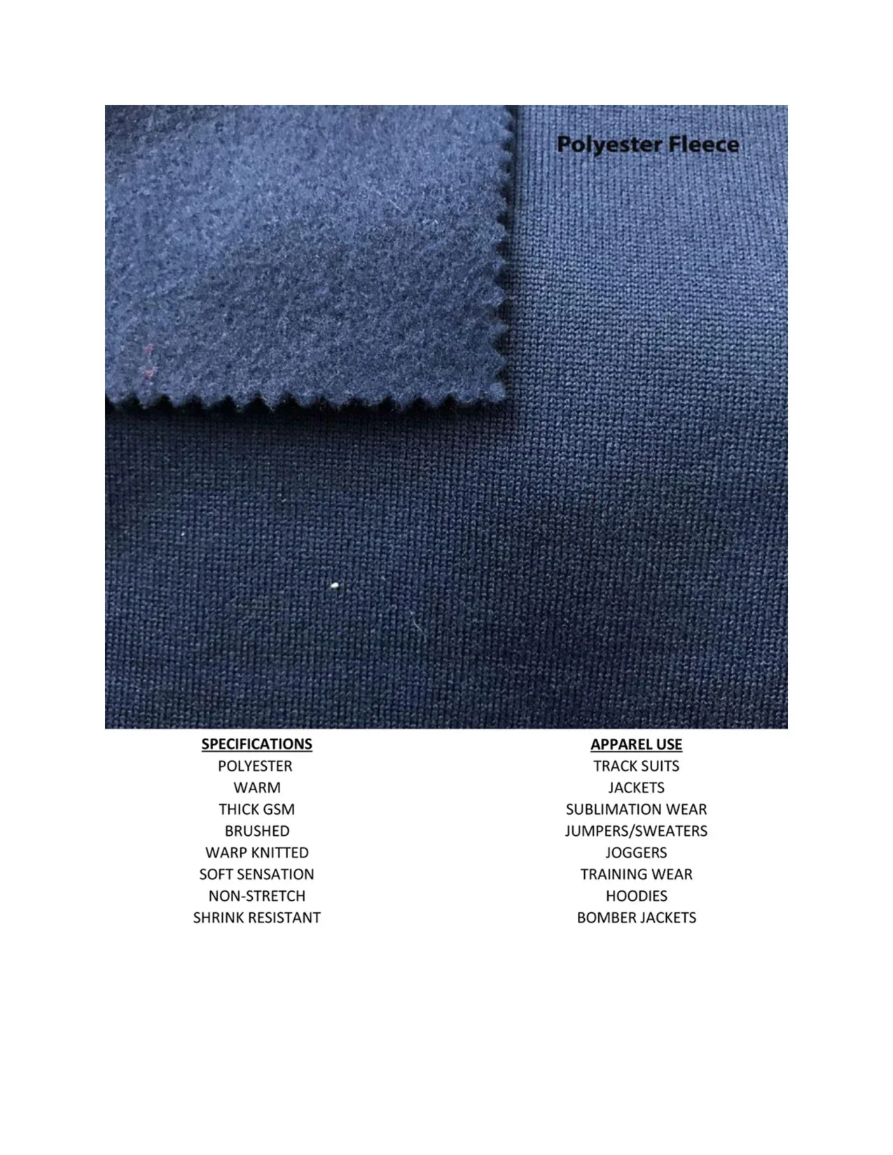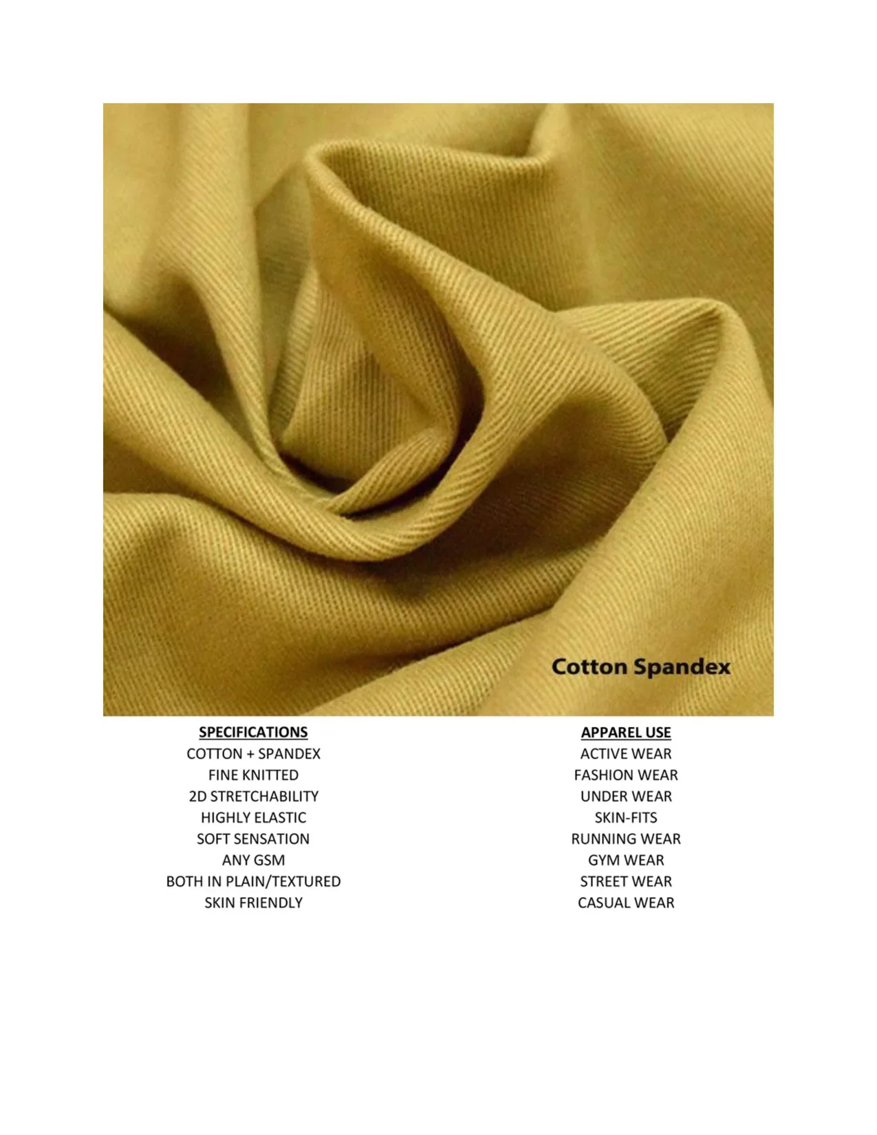 knitting is only feasible in large quantity order i.e. 400 Pieces or more in one kind of customized fabric. However regular fabric selection, there is no minimum quantity barrier. There are regular qualities & types of Fabrics commonly recognized globally are provided below for consideration. We are always happy to assist our clients in fabric selection process, so please contact our expert for mutual understanding in fabric selection.